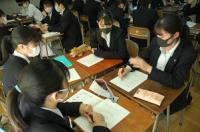 1年生が2年生に対して課題研究の発表を行いました。普通科1年生は文型・理型の希望で分かれ、それぞれ2年生の文型・理型クラスで発表を行い、理数科1年生は理数科2年生に対して発表しました。