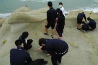 実際に海に入っての海産動植物採集・観察、恋路海岸での地学巡検(柳田層観察)はできませんでしたが、放卵放精等の様子を直に見るよい機会となりました。