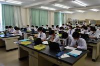 7月26日(火)・27日(水)に金沢工業大学の竹俣一也教授、国際高等専門学校の南出章幸教授、国際高等専門学校 の藤島悟志教授をお招きし、データサイエンス基礎講座を開講しました。参加者は普通科・理数科の22名で、それぞれ1台ずつchromebookを使用し、講義・実習を受講しました。