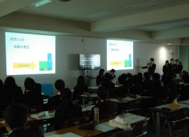 大学生や教授の先生方からは、本校の校内で実施した時とは違った切り口の鋭い質問が飛び交っていましたが、試行錯誤しながら答える生徒達の様子を見て大変頼もしく感じました。