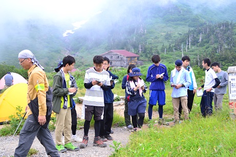 7月31日(火)~8月1日(水)にかけて白山野外実習を実施しました。今年は生徒40名、引率7名、山岳ガイド1名、看護師1名の49名が7班に分かれて登山を行い、各ポイントで沸点測定や地質・植生調査等の実習を行いました。