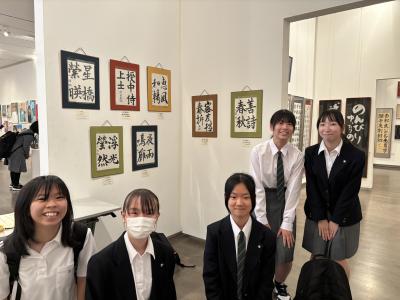 県内の高校書道部から117作品、うち本校からは部員12名の作品が展示されています。