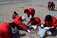 午後からは探究活動のグループごとに海岸清掃に参加しました。ポリタンクや漁網といった大きなごみから小さなマイクロプラスチックまで、様々なごみが集まり、用意していたトラック2台では運びきれず、さらに1台を追加していただきました。体験を通して得た気づきや感じたことを、今後の探究活動に活かしてくれることと期待しています。