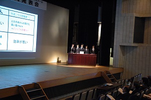 12月11日(金)に石川県文教会館で開催された発表会で、理数科2年生の「風力発電」班と「津波と海底地形の関係」班が口頭発表を行いました。また、理数科2年生の全ての班が日本語でのポスター発表を行いました。