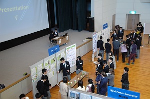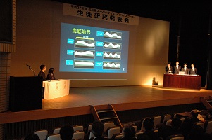 「風力発電」発表の様子 「津波と海底地形の関係」発表の様子 ポスター発表の様子