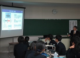 11月2日(金)に、東北大学大学院工学研究科の手束展規先生による特別講義を開催しました。途中、ミニ実験も交えながら磁性材料とは何か、どのような仕組みで省エネにつながるのかなどを学びました。まだ授業で扱っていない分野の話もあり、難しい内容の話もありましたが、生徒たちは班のメンバーと相談しながら取り組んでいました。