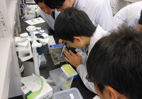 11月24日(金)に石川県立大学の生物資源工学研究所で大腸菌のDNAを使った実験をさせていただきました。この実験は大腸菌のDNAを制限酵素で切断し、それを電気泳動でそれぞれの長さのDNA片に分け、写真でDNAのバンドを確認するところまでを体験することができました。後日、学校でその写真を元にDNA断片の泳動距離からそのDNA断片の大きさを算出しました。