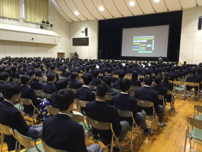 大学入試の、仕組み、日程、心構え、などについての説明があり、生徒は真剣に話を聞いていました。