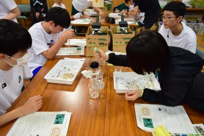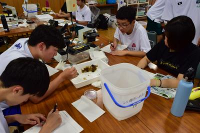 本校の東野先生の指導のもと、ウニの人工授精を行い、発生の過程を観察しました。