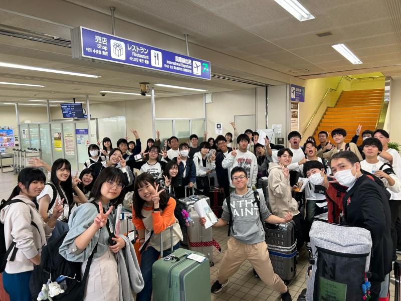 みんな楽しみにしていたアメリカ研修。小松空港でこの表情です。