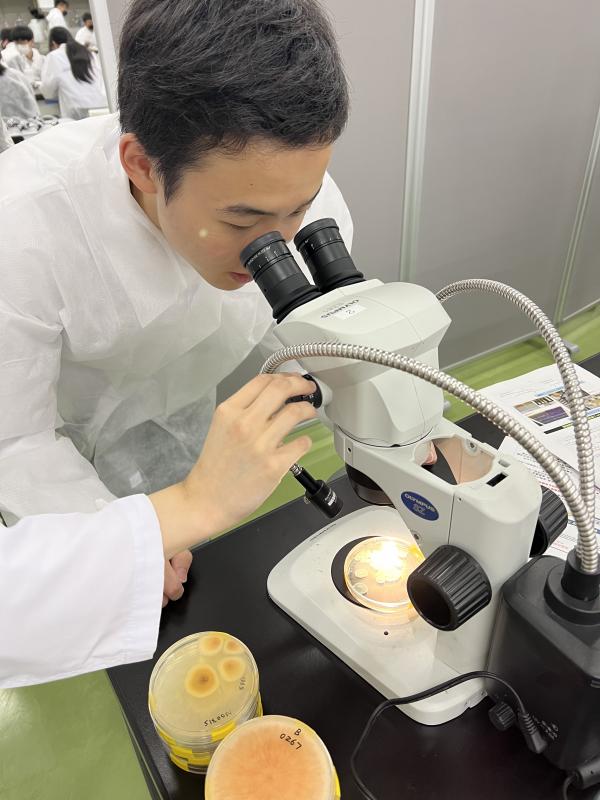 私たちは「バイオと化学で新型コロナウィルス増殖阻害物質を創る」とテーマのもと、1日をかけて、専門的な内容はもちろん、器具の操作方法や、菌の培養など、日頃の授業ではできないような体験をすることができました。何かを研究するときには、失敗はつきもので、むしろ、失敗を分析することで次につながるというや、大学レベルの実験は1日単位であるということに驚きましたが、今後、私たちも様々な実験や研究をする上での教訓になりました。