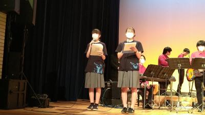 9月17日に泉野小学校で行われた「泉野ガーデンコンサート」に2年生3名が出演し、金沢二水高校放送部の生徒とともに「ともだちや」、「いちびょうの言葉」、「おならはえらい」、「おてがみ」などを朗読しました。