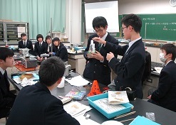 今年は生物&物理分野で、耳の構造に対する基礎知識を理解し、それを基により効率よく音を伝える方法を思考する授業でした。生徒達ははじめに耳の構造等の基礎知識を学んだ後、班毎に耳の構造模型を作成しそのしくみを発表しました。