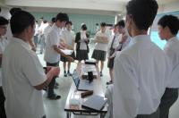 理数科2年生が、7月12日(水)の6・7限目に大会議室と視聴覚室で、研究ディスカッションを行いました。スライドの他、実験器具や材料を使って説明する班もあり、様々な工夫がみられました。また、6限目は理数科1年生が、7限目は理数科3年生が参加し、ディスカッション形式で議論しました。研究内容についての鋭い質問が飛び交い、先輩からアドバイスをもらう場面もあり、大変有意義な時間となりました。