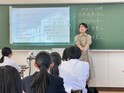 1年生を対象に行われた「先輩に学ぶプレゼン術」では、東京大学、京都大学、東京外国語大学、神戸大学、金沢大学で学ぶ卒業生たち13名からプレゼンテーションを通じて「大学での学びと自分の将来」について話を聴き、1年生たちは自分たちの先輩というロールモデルから大きな学びを得ました。
