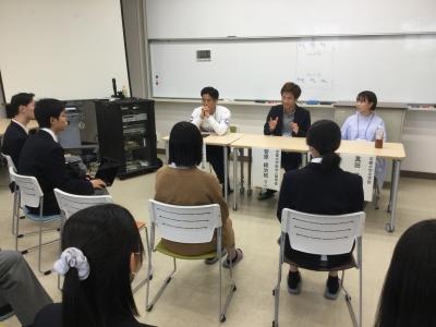 1年「先輩に学ぶプレゼン術」、2年「社会人と語る会」を開催