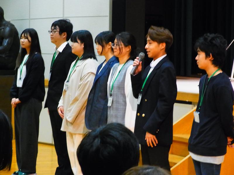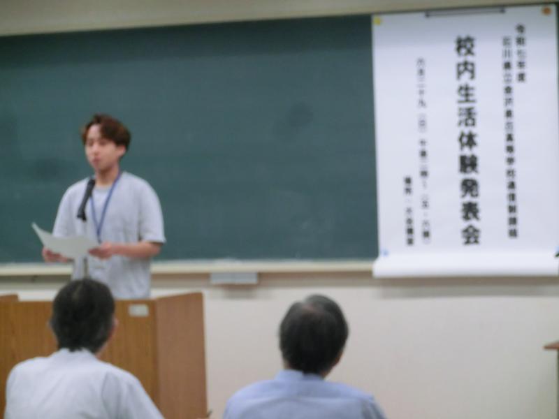 例年、大きな感動を呼び起こし、好評を博している本発表会に、今年度7名が臨みました。会の運営は生徒会がおこない、審査員は岡橋校長先生ほか4名の先生方、生徒審査員5名が加わり、慎重に審査が行われました。発表の場を自己の成長の場ととらえ、堂々と発表する7名の姿はとても立派でした。発表後の生徒の感想には「苦しい経験を持っているのは自分ひとりじゃない。」、「自分という存在を見つめなおすきかっけとなった。」などの意見がありました。発表者の思いが聴衆に伝わる素晴らしい生活体験発表会となりました。「みんな1000点満点です!!」