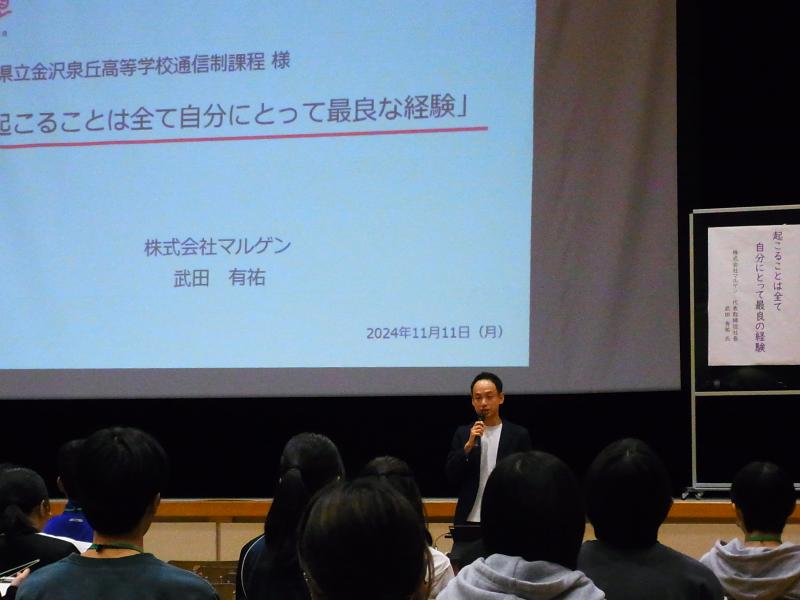 11月10日(日)、11日(月)の両日、企業経営者の方からご講演をいただきました。企業の理念やミッション、高校生に伝えたいことなど、自身の経験をもとに具体的に語っていただきました。「社会に貢献する」「社員や家族を大切にする」、そして「お客様の立場になって考える」など熱い思いが伝わり、生徒は自分事として熱心に聞き入っていました。講演後の感想には「変化に対応することの大切さ」「今当たり前だと思う環境にいることに感謝」など、今後に活かせる前向きなものが多く寄せられました。