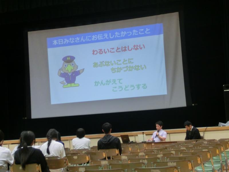 前期最後のスクーリングに標記の教室を実施しました。金沢中警察署生活安全課の方から、若年層の大麻の使用が顕著であること、これに対して防犯意識を高め身を守ること、悪いことに誘われても絶対断る勇気を持つこと等の重要性を教えていただきました。また、薬物の恐ろしさや言葉巧みに誘惑する手口など、実際にあった事例を聴くことで、正しい知識を持ち、意識して行動することの大切さも学びました。生徒達にとって、現実の社会を生きていくための方法を学ぶことができた貴重な機会となりました。