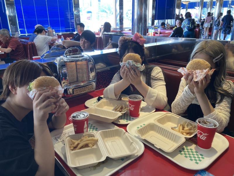 昼食のハンバーガー。さすがアメリカンサイズ!女子の顔くらいの大きさです。