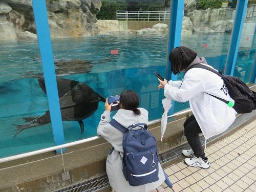 迫力ある動物やかわいい動物を目の当たりにして、歓声が上がってい