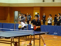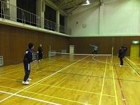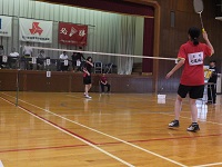 球技大会の種目は、「スポレック」という競技で、短いラケットと軽いスポンジでできたボールを使用するテニスに似たスポーツです。今年度は、事前の練習から盛り上がり、本番も白熱した試合が連続しました。人数の関係で男女混合でシングルス戦を行い、女子にはハンディが付きました。今回はエキシビジョンマッチでダブルスを行い、教員も参加しました。全員で盛り上がる球技大会になりました。