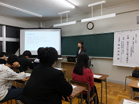 管理栄養士の神戸智美さんによる食育教室が行われました。神戸さんは本校の給食の栄養管理をされています。講義では、食品の栄養分類や自己管理の目安などをわかりやすくお話下さいました。良い生活習慣のキーワードとして「一無、二少、三多」(たばこは吸わない、腹八分、アルコールは少なく、体を動かす、ストレス解消、多くの人、事、物に接する)を最後にあげ、日常生活の改善につながるきっかけとなる行事になりました。