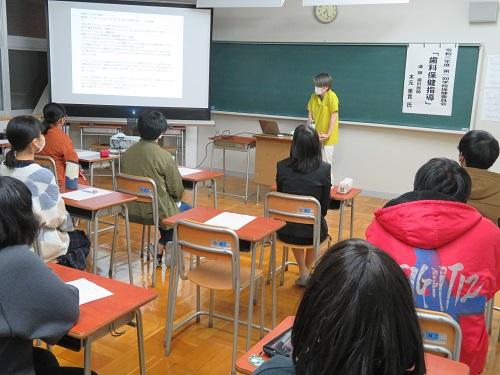 12月3日(金)第1回学校保健委員会(歯科保健指導)が行われました。講師は、本校学校歯科医「木元歯科クリニック」の木元 美貴先生で、歯の大切さと虫歯が身体に及ぼす悪影響について教えていただきました。前半は講演会、後半は効果的な歯みがきの方法について実技指導が行われました。