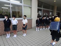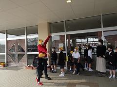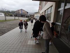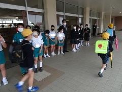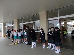 ↓玄関では出発式を行いました。5.6年生の目的地は森林公園の動物の森です。5年生の目当てには、6年生の素敵な姿を見て学ぶことが含まれています。よい姿をたくさん学んできてください。顔を上げてしっかりと話を聞いています。