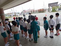 ↓1年生 出発式です。一年生はシグナスの近くのなかよし公園に行ってきます。