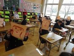 ↓2年生 図工 自分の似顔絵、表情豊かに仕上がりました。