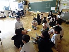 ↓1年生 お話をする人を見て聞くことを学んでいます。相手の話をよく聞くことは、相手を大切にする心を育てることにもなります。