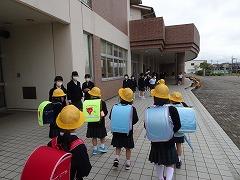 ↓2年生 音楽の時間の帰りです。自分たちでしっかり並ぶことができました。遠足に安全に行けるよう、並び方歩き方を練習しています。