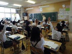 ↓1年生の5時間目、道徳の学習です。「楽しい学校」のお話を読んで、なにが楽しいのか、みんなで話し合いました。1年生も自分の考えを言おうと一生懸命考えています。こんなに素晴らしい手の挙げ方で、友達の意見の聞き方もばっちりです。よく頑張っています。