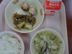 ↓今日の給食です。メニューは、ごはん、パオス、ホイコーロー、春雨スープで本格的な中華料理でした。