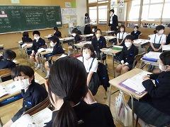 ↑教室でも今朝のあいさつ運動を振り返り、あいさつをする意味を確認し合っていました。すてきなあいさつができる条南っ子になってください。