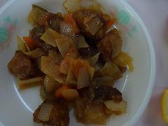 ↓今日の給食は、塩肉じゃが、肉団子、海藻サラダでした。肉じゃがは塩味にすると、色合いも美しいことが分かりました。たくさんの食材をいただきました。