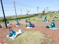 ↓1年なかよし公園 お弁当がとってもおいしかったです。ありがとうございます。コロナ感染防止の約束を守って、きょりをとってお弁当を食べました。歩き方もとても上手でした。約束をきちんと守って頑張って歩いた小学校初めての遠足でした。