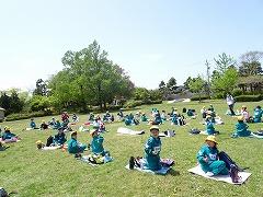 ↓2年生 津幡中央公園 藤の花が咲き始め、春の風に揺れてよい香りが漂っていました。コロナ感染防止の約束を守って、おいしいお弁当をいただきました。お弁当の次はおやつタイムです。