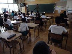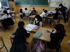↓5年 習字の授業、基本的な技術を確認しました。日本の文化の習字を今年も上達させてほしいと思います。