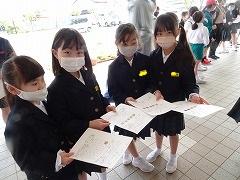 ↓交通安全の集いを行いました。6年生の代表が誓いの言葉を述べました。安全に十分気を付けて登下校してください。
