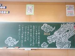 ↓3学期の始業式を行いました。3学期は「自分から大作戦!」鯉が登竜門で龍になったように、努力を惜しまず、なんでもかなう龍の玉をゲットしましょう。