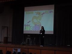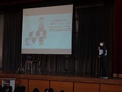 ↑生活のお話では、あいさつの例を先生方が劇をして、みんなに見てもらいました。出会った人に挨拶をして、みんなで明るい3学期にしていきましょう。