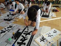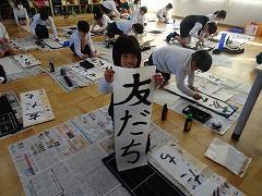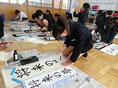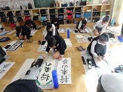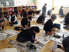 ↓6年生 小学校最後の書初めです。夢に向かって挑戦してください。