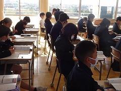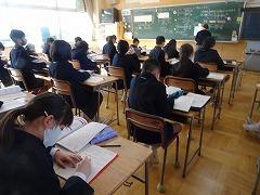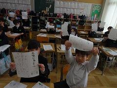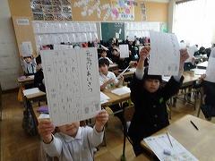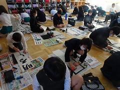 3,4時間目は校内書初め大会を行いました。今年の字の上達と学業成就を願って、真剣にとり組んでいました。
