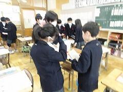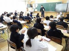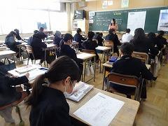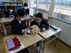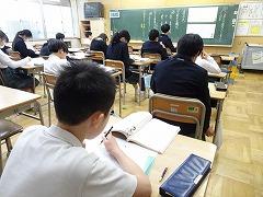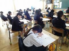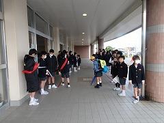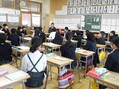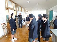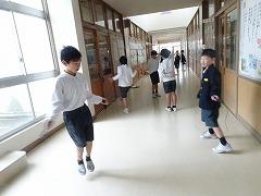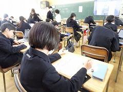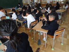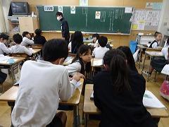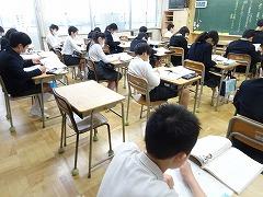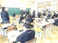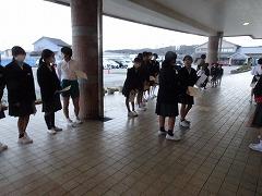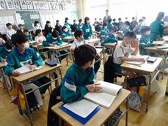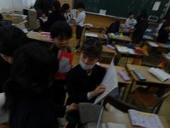↓地震と津波の避難訓練 ベルやサイレンを鳴らさずに、机の下に隠れる訓練と、津波が起きた場合の3階に避難する命を守る訓練を行いました。静かに、素早く避難できました。地震が起きたら、火を消す、じょうぶな机の下に隠れる、家の場合は崩壊する前に外に避難する、津波は日本海で起きた場合は数分で押し寄せるので、ためらわずに高い所へ避難する等、命を守る行動を確認しました。「ともに」寄り添い、「ともに」励まし合い、「ともに」思いやりの心をもって、「ともに」自分ができることは何かを考え、「ともに」夢に向かって力強く生き抜いていきましょう。