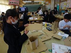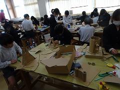 ↓4年図工 段ボールを用いて、夢の家づくりです。いろいろ工夫することに夢中です。