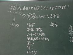 ↓今日の昼学習では、自学について全学級で話し合いました。何のために自学をするのか、その目標を達成するために、どんな自学をするといいのかなどです。今後、3回、自学を見合う会を行います。1回目は学級で、2回目は学年で、3回目は他の学年の自学ノートを見合います。自分から目的をもって自学学習に取り組むことにチャレンジしていきたいと思います。