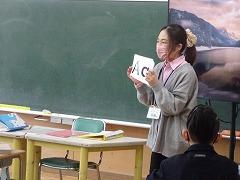 ↓図書ボランティアさんの心温まる読み聞かせです。今週は、1,2年生の学級に入っていただきました。