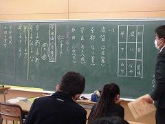 ↓6年 国語 平安時代の仮名を用いて言葉を書き、何と書いたか問題にして、友達に解いてもらっています。